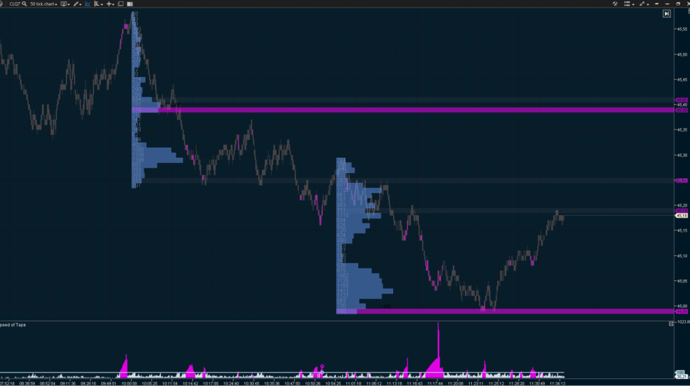 • in Volume mode, it displays the exact number of contracts traded within a given time frame;